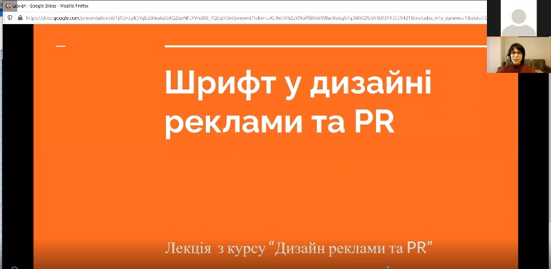 Відбулася відкрита онлайн-лекція доцентки кафедри маркетингу Ольги Антонової з дисципліни «Дизайн реклами та PR».