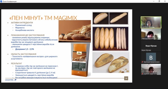 Фахівчиня розповіла про різні технології виготовлення заморожених напівфабрикатів хлібопекарського виробництва різного ступеня оброблення. Зокрема, охарактеризувала особливості виготовлення сформованих тістових напівфабрикатів, частково вистояних і частково випечених напівфабрикатів. Було приділено увагу вимогам до основної сировини та комплексним поліпшувачам, які рекомендовано використовувати у цих технологіях.
