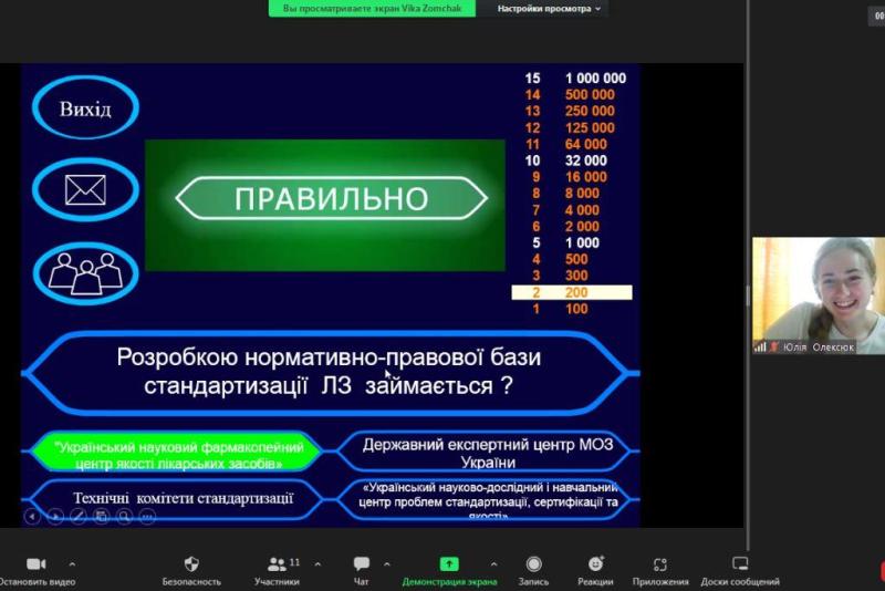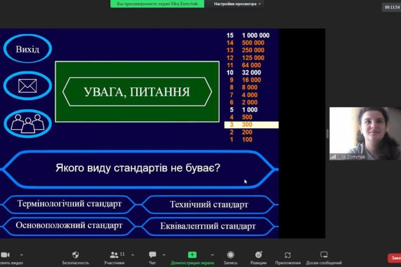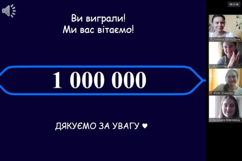 Підсумком вивчення дисципліни став залік, який пройшов у інтерактивній формі: студенти поділилися на групи та підготували різні цікаві ігри-завдання – «Хто хоче стати мільйонером», Кахут, кросворди – все це дало змогу здобувачам проявити свою творчість, а викладачці – оцінити їх знання з предмету.