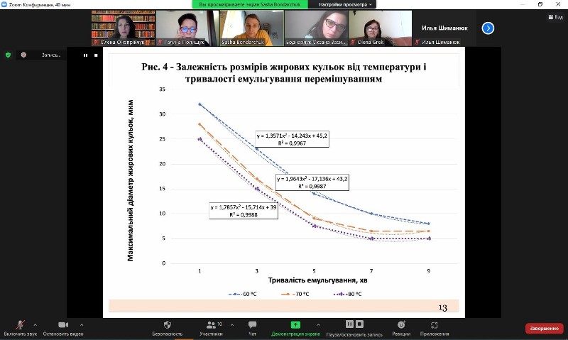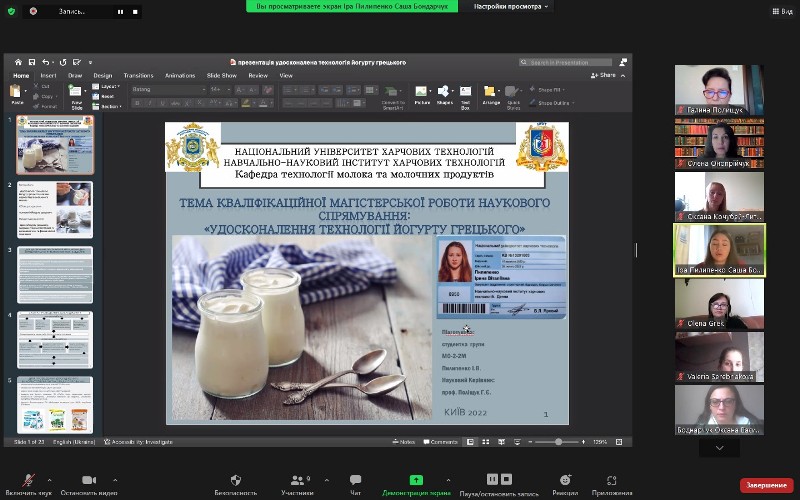 На кафедрі технології молока і молочних продуктів із використанням сучасних інформаційно-комунікативних технологій відбулися успішні захисти здобувачів освітнього ступеня «Магістр» денної та заочної форми навчання, що навчалися за спеціальністю 181 «Харчові технології», освітньо-професійною програмою «Технології зберігання, консервування та переробки молока».