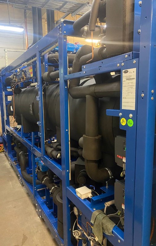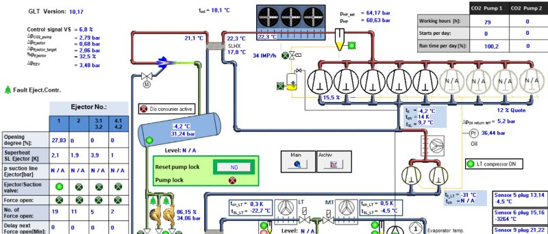 Такий проєкт у такому виконанні реалізований вперше в Україні. Він – унікальний з технічної точки зору: транскитичний цикл, з тиском у газоохолоднику 120 бар; енергозберігаюче обладнання; ежектори; затоплені випарники, рекуперація тепла для ГВП; підвищення потенціалу вторинної енергії в тепловому насосі власного розроблення для системи опалення гіпермаркету та багато інших новинок.