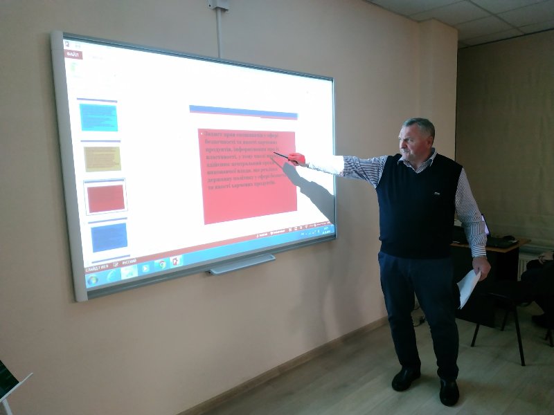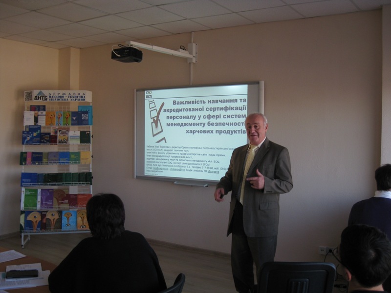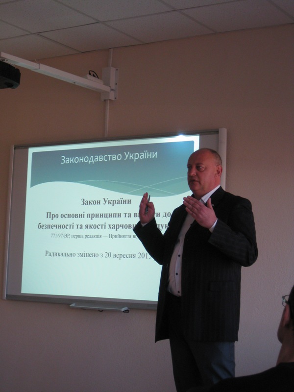 Доповідачами також виступили і викладачі кафедри експертизи харчових продуктів НУХТ – завідувач кафедри Світлана Усатюк розкрила питання «Навчання спеціалістів для впровадження систем управління якості та безпечності на підприємствах харчової промисловості», а Василь Сидор – аспекти забезпечення прав споживачів на придбання та споживання якісних і безпечних харчових продуктів.