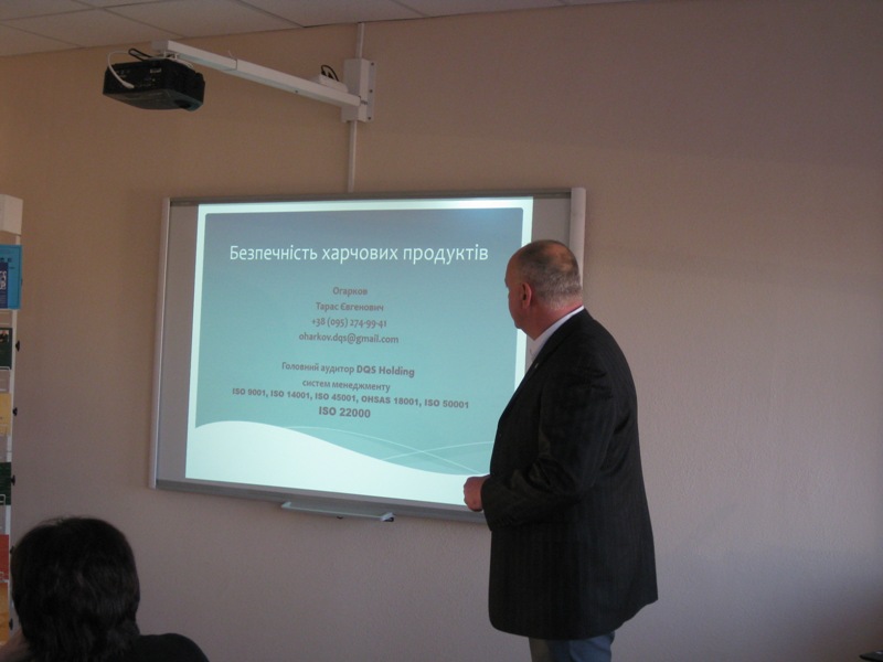 Велику увагу учасників круглого столу провернула доповідь Тараса Огаркова – головного аудитора DQS Holding GmbH систем менеджменту ISO 22000, ISO 9001, ISO 14001, ISO 45001, ISO 50001 щодо вимог до підприємств у сфері безпечності харчових продуктів, що особливо актуально в умовах сьогодення.