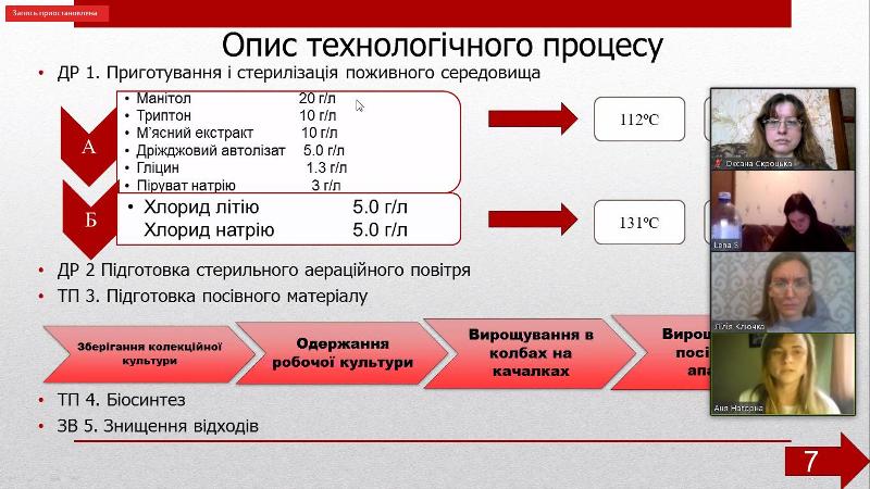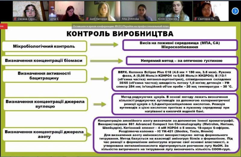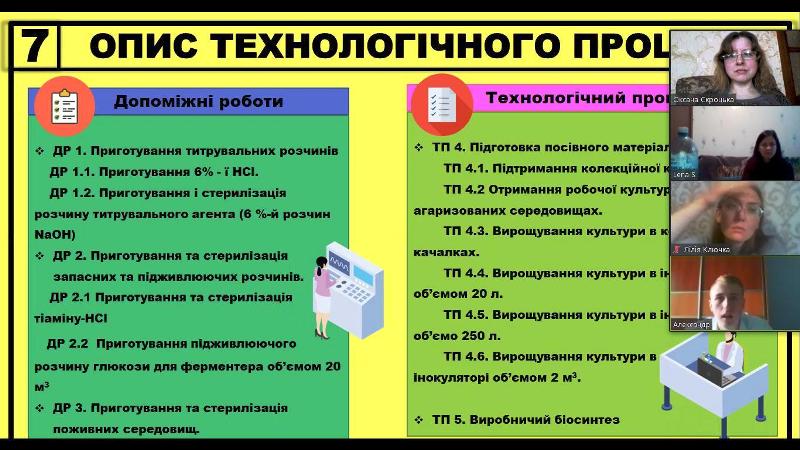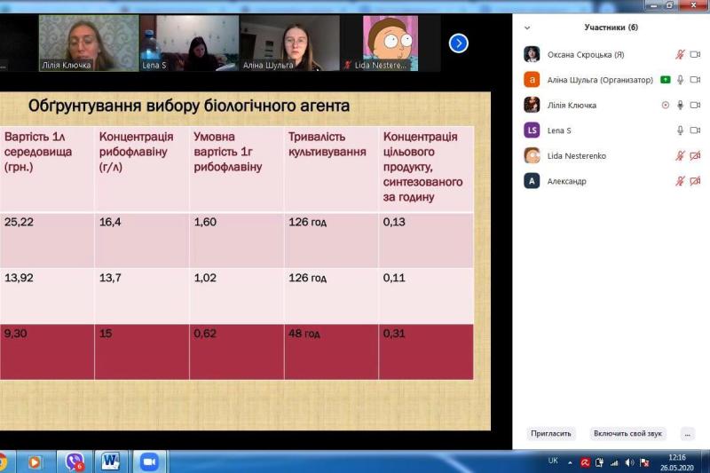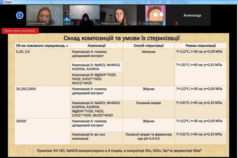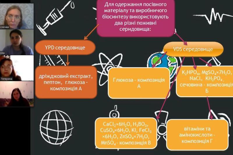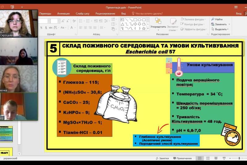 Нещодавно у форматі конференції Zoom свої курсові роботи з дисципліни «Технологія мікробного синтезу лікарських засобів» захистили студенти третього курсу спеціальності 162 «Біотехнології та біоінженерія».