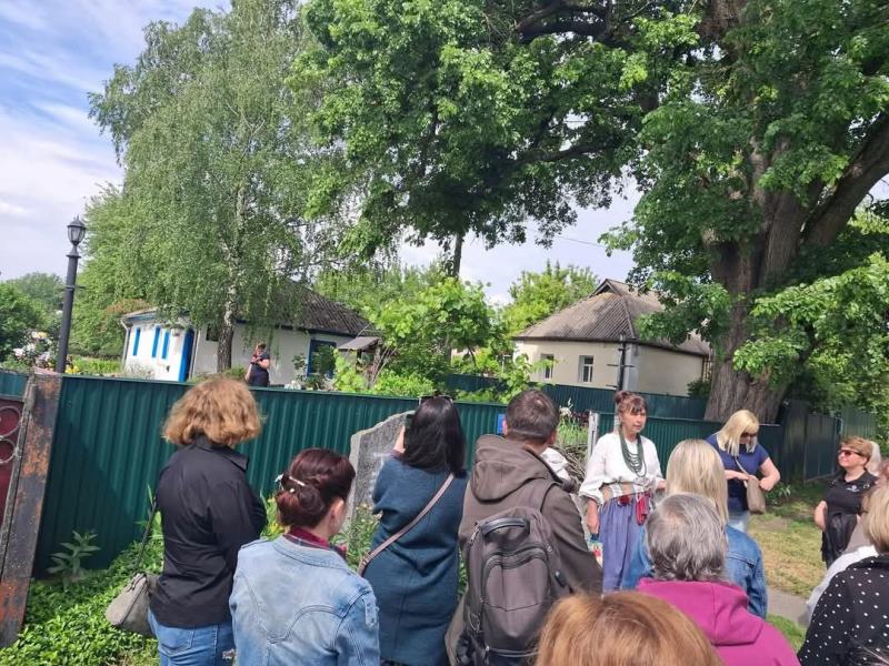 Першою зупинкою стало рідне село мисткині Богданівка, де група вшанувала її пам'ять, залишивши квіти біля її могили.