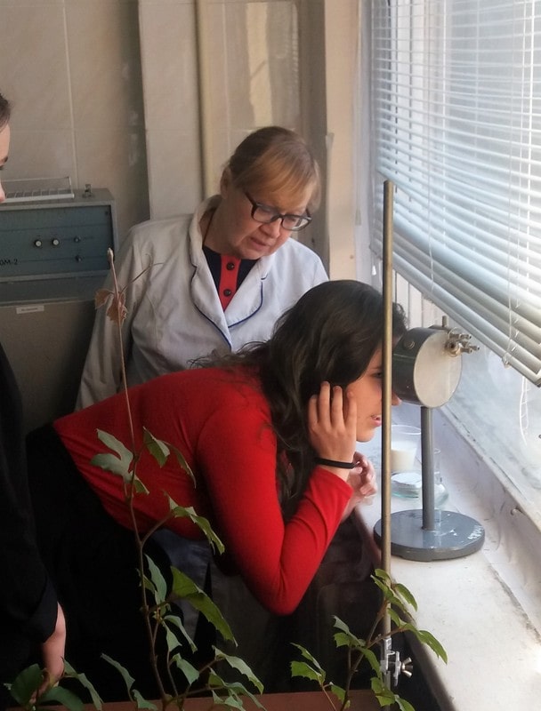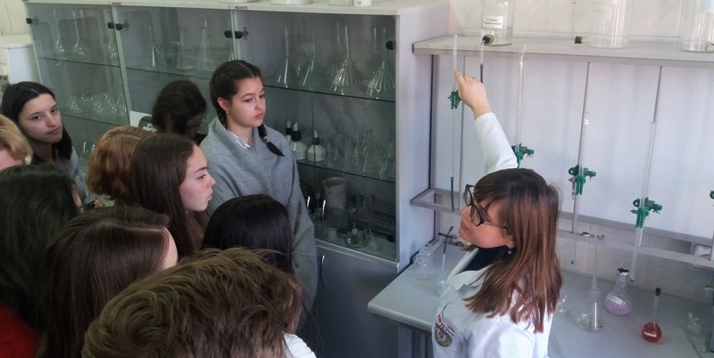 Після дискусії відбулася лабораторна робота, на початку якої майбутнім вступникам доцент Анастасія Пухляк продемонструвала особливості роботи сучасних аналізаторів якості молочної сировини. У ході роботи за допомогою аналізатора молока, учнями були визначені температура, густина, масова частка жиру, сухий знежирений молочний залишок, білок та вміст води у незбираному молоці.