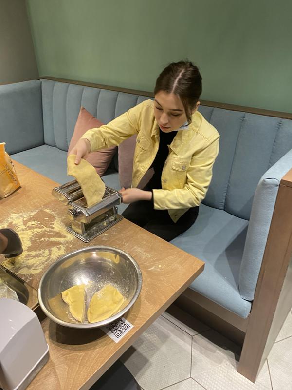 Із дотриманням усіх карантинних обмежень, майстер-клас провів шеф-кухар закладу, наш випускник Дмитро Лазоренко. Він поділився власним досвідом щодо особливостей вибору борошна, замішування тіста, певними тонкощами, якими необхідно володіти, щоб приготувати бездоганну пасту.