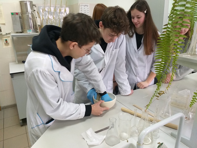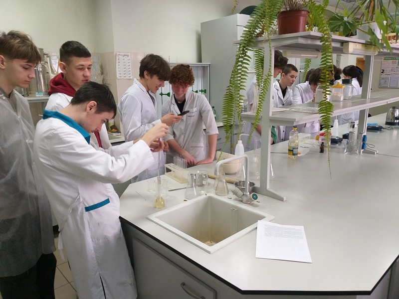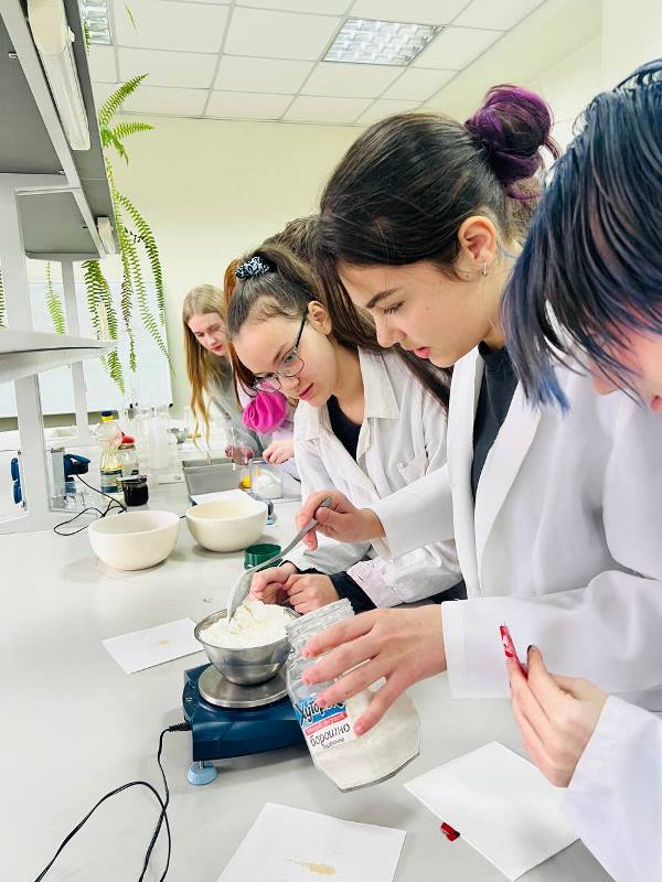 Тема лабораторного заняття узгоджується з навчальним планом підготовки школярів. У межах презентації нашого університету дію ферментів ліцеїсти досліджували на прикладі пресованих, сухих дріжджів і меду. Учні із зацікавленістю виконували запропоновані досліди. Дев’ятикласники самостійно під керівництвом викладачів кафедри експертизи харчових продуктів зробили необхідні розчини та підготували зразки – тісто та розчин меду, які в подальшому розмістили за необхідної температури для створення оптимальних умов для дії амілолітичних ферментів. Бонусом якісного виконання лабораторних дослідів був випечений хліб і його дегустація за результатами дослідження властивостей ферментів у дріжджах.