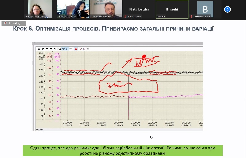 Лектор презентував кроки впровадження елементів та інструментів ощадливого виробництва, що показали, яким чином можуть бути використані здобуті теоретичні знання у практиці. Віталієм Іванесем продемонстровано, яким саме чином визначаються оптимальні параметри процесу при врахуванні особливостей апаратурного оформлення, системи автоматизації та технології, що власне і відповідає особливостям міждисциплінарної освітньо-наукової програми за трьома спеціальностями – 181 «Харчові технології», 151 «Автоматизація та комп’ютерно-інтегровані технології», 133 «Галузеве машинобудування».