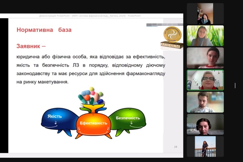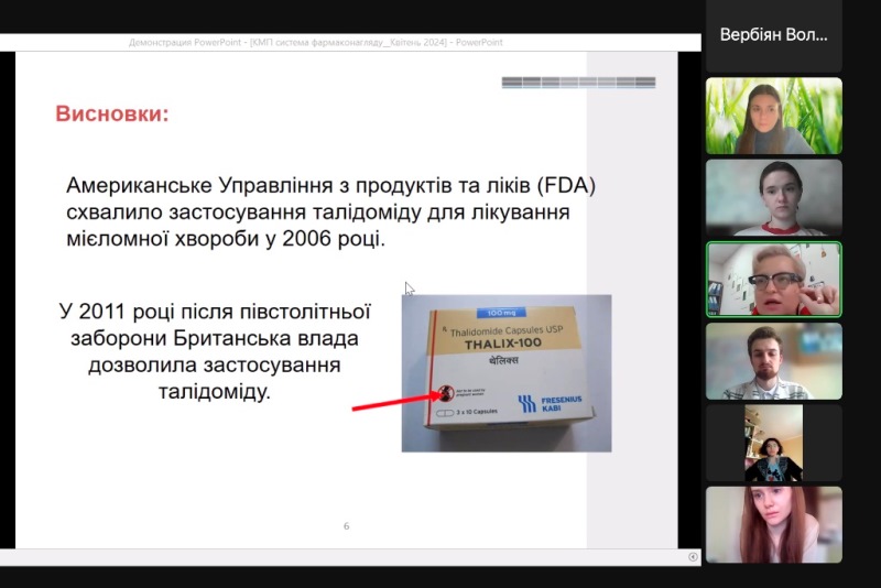 Зокрема поговорили про фармаконагляд і його важливість; якість лікарських засобів та якими критеріями вона визначається; «талідомідову катастрофу», її причину та страшні наслідки, які вплинули на життя тисяч людей, а особливо дітей, висновки та нововведення, що з’явились у галузі після цієї катастрофи; важливість проведення відповідних досліджень перед веденням будь-якого лікарського засобу в обіг та дотримання інструкції; нові впровадження формату eCTD, котрим користуються в Європі і все здійснюється в електронному форматі; генерики та стан сучасної фармацевтичної промисловості в Україні. Крім того, лекторка розглянула багато практичних кейсів і питань, які можуть бути актуальними навіть у повсякденному житті.