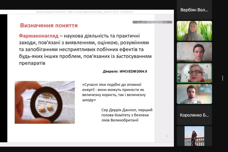 Лекцію було розпочато зі слів відомого швейцарського лікаря та алхіміка Парацельса: «Все є отрута, а ліки визначає доза». Саме уповноважена особа з фармаконагляду на підприємстві відповідає за безпеку лікарських засобів. Безпека лікарського засобу визначається співвідношенням таких показників, як користь/ризик, але це співвідношення ніколи не буває постійним. Про все це і ще багато цікавого дізналися магістранти під час активної дискусії з Риммою Батталовою.