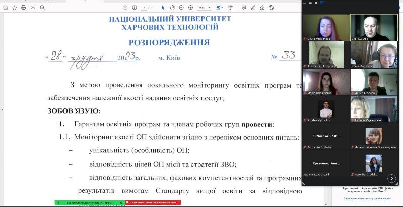 Засідання робочої групи було присвячене локальному моніторингу освітньо-професійної програми «Технології харчування» підготовки бакалавра за спеціальністю 181 «Харчові технології» галузі знань 18 «Виробництво та технології» та забезпеченню належної якості надання освітніх послуг.