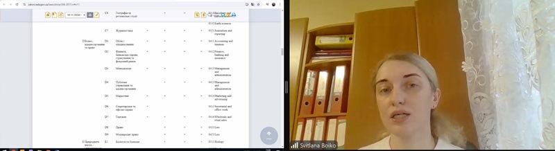 До учасників зустрічі звернулися гарантка освітньої програми першого (бакалаврського) рівня, доцентка Світлана Бойко та гарантка освітньої програми другого (магістерського) рівня, доцентка Інна Дем’яненко, які висвітлили структуру оприлюднених на сайті НУХТ для публічного обговорення проєктів освітньо-професійних програм, особливості освітніх програм, цілі, освітні компоненти, які сприяють формуванню загальних і фахових компетентностей. Гарантки зазначили, що в програмах уже враховано всі зауваження та побажання, які були висловлені під час акредитації, а також означили сильні та слабкі сторони програм із метою їх подальшого вдосконалення.