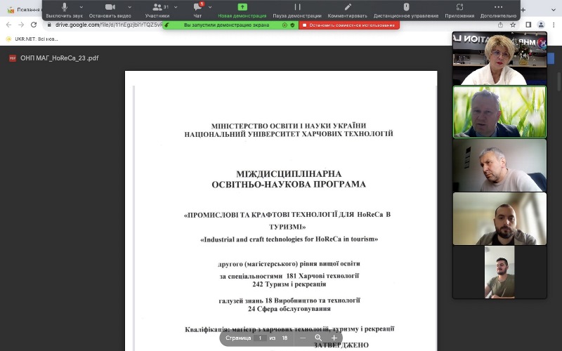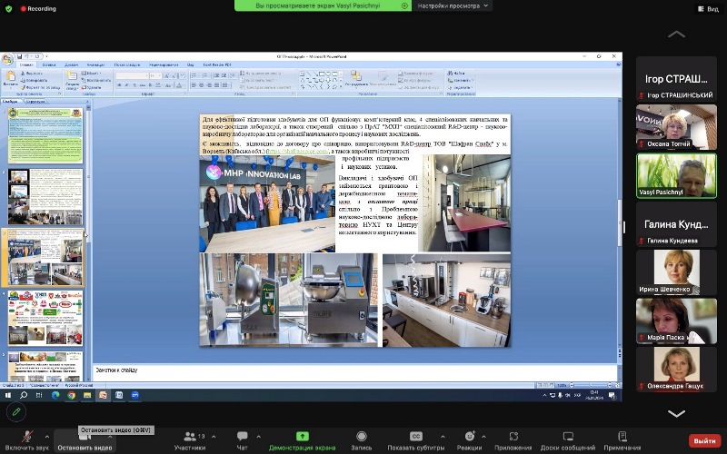 У засіданні взяли участь також представники академічної спільноти, гаранти споріднених програм, деканка факультету переробних і харчових виробництв Державного біотехнологічного університету, професорка Марина Янчева, завідувачка кафедри готельно-ресторанного бізнесу Львівського державного університету фізичної культури імені Івана Боберського, професорка Марія Паска та зовнішні стейкхолдери – к.т.н., менеджер контролю якості і управління асортиментом ТОВ «Прилуцький завод «Білкозин» Олександр Горбач і к.т.н., директорка ТОВ «НАША №1» Вікторія Жук.