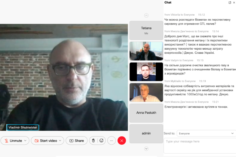 Днями магістрантам-біотехнологам, що навчаються за освітньо-професійною програмою «Промислова біотехнологія», випала нагода взяти участь у міжнародній події – експертній онлайн-дискусії з провідними спеціалістами у сфері виробництва біогазу, президентом американської компанії Unconventional Gas Solutions (UGS) Марком Страубом, головою правління Біоенергетичної асоціації України Георгієм Гелетухою та представником української компанії із виробництва біогазу MNC GROUP Миколою Дем'яненком.