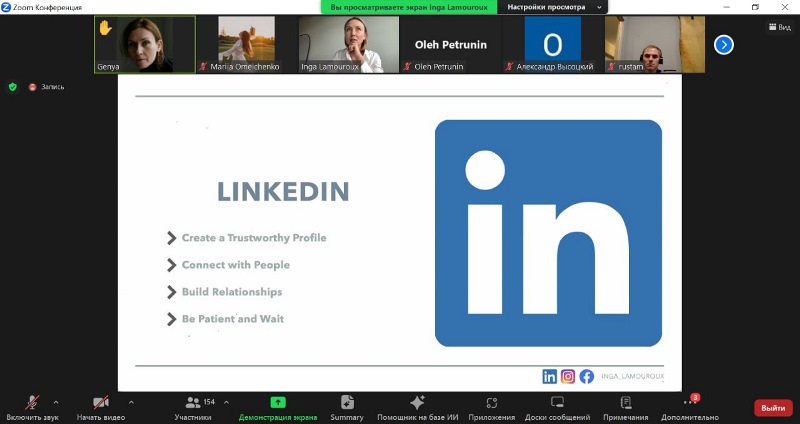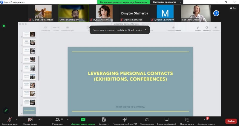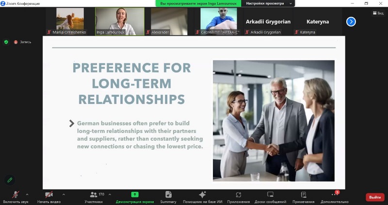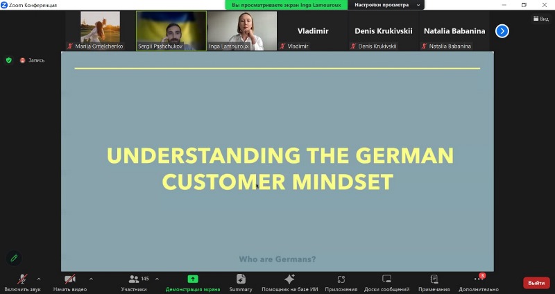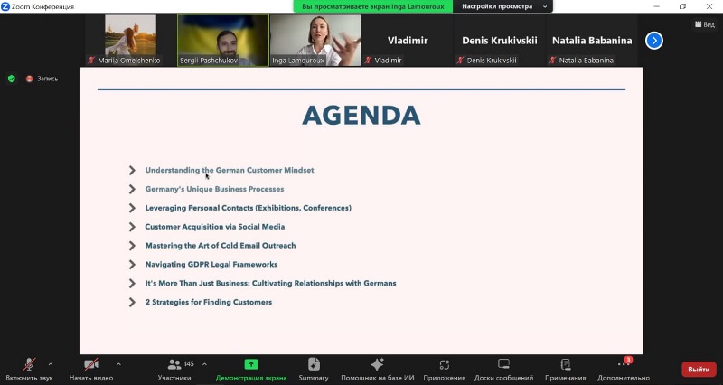Під час вебінару говорили про 5 найкращих стратегій пошуку клієнтів, унікальні бізнес-процеси Німеччини та мислення потенційних клієнтів, залучення клієнтів через соціальні мережі, мистецтво холодної електронної пошти, навігацію правовими межами GDPR.