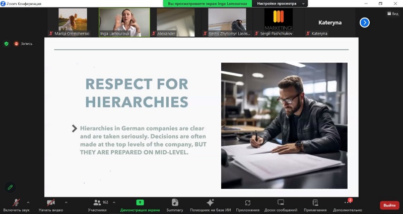 2 листопада 2023 р. магістрантка спеціальності «Харчові технології», освітньо-професійної програми «Технології в ресторанному господарстві» Марія Омельченко долучилася до міжнародного вебінару «Unlocking German Markets: стратегії залучення клієнтів».