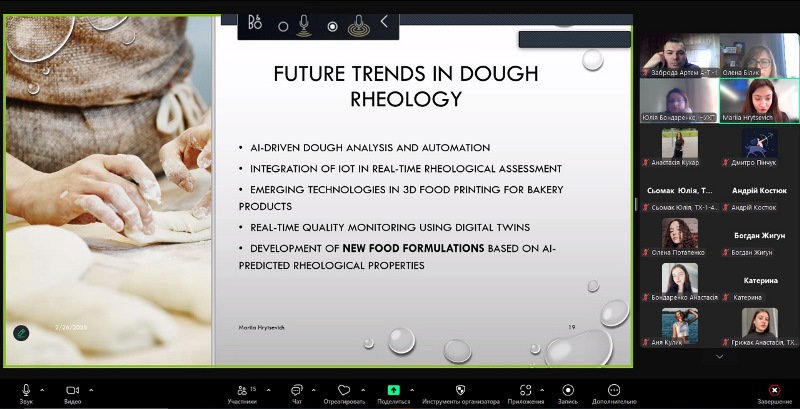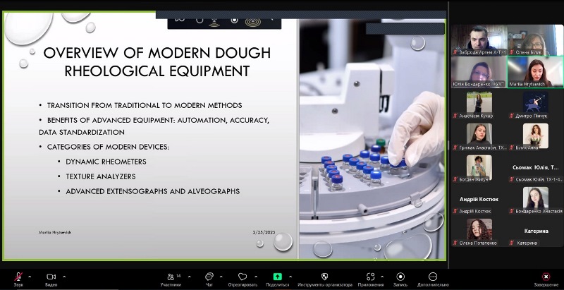 Марія Гріцевич також поділилася власним досвідом оцінювання структурно-механічних властивостей різних тістових систем, у тому числі безглютенових, та виконання науково-дослідної роботи в лабораторіях європейського університету.