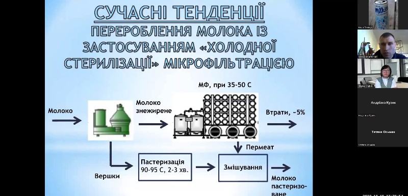 На кафедрі технології молока і молочних продуктів відбулася гостьова лекція, яку для магістрантів освітньо-професійної програми «Технології зберігання, консервування та переробки молока» прочитав головний технолог із очищення води ТОВ «Вінкар Сістемс», доктор технічних наук Юрій Змієвський. Лекція «Застосування мембранних процесів розділення у молочній промисловості на прикладі мікрофільтрації та електродіалізу» була прочитана у межах дисципліни «Інновації молокопереробної галузі».