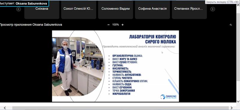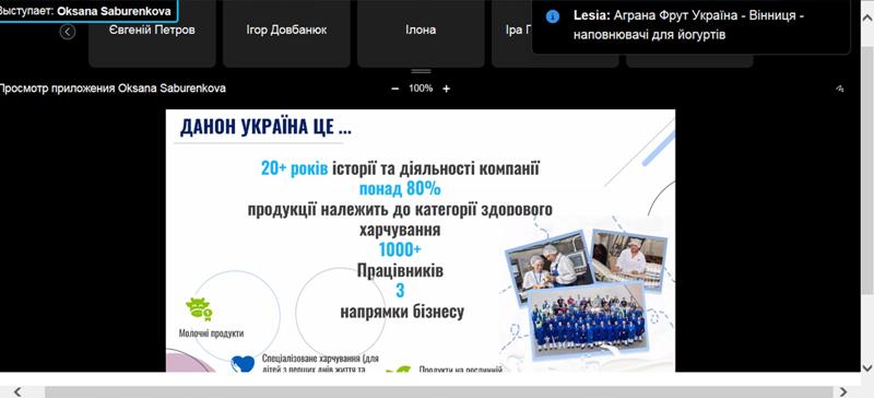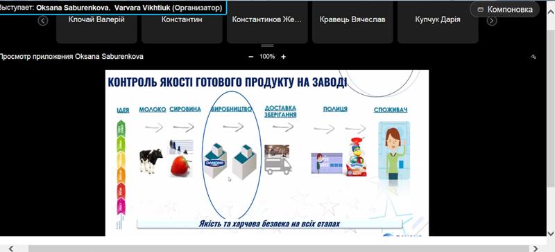 Магістранти групи АЮ-1-2М факультету готельно-ресторанного та туристичного бізнесу імені проф. В.Ф. Доценка та викладачі кафедри технології ресторанної та аюрведичної продукції зустрілися в онлайні з фахівцями компанії «Данон Україна».