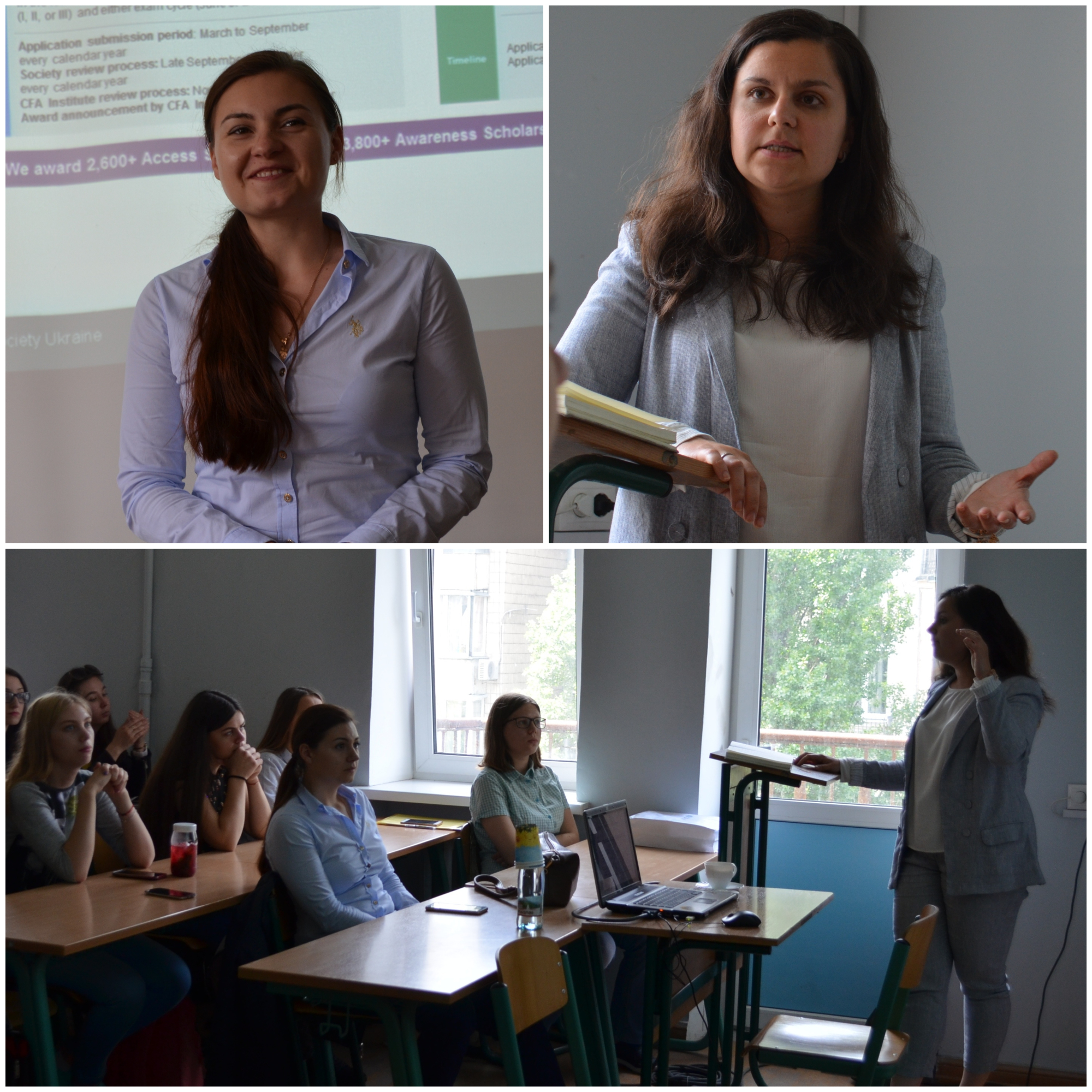 CFA Institute – світова організація, що об’єднує інвестиційних професіоналів усіх країн. Інститут пропонує навчання на професійних спеціалізованих освітніх програмах із підготовки фахівців фінансового ринку. Сертифікат CFA дає переваги у працевлаштуванні в будь-якій провідній фінансові компанії по всьому світу. Зустріч була організована за ініціативи та сприяння доцента кафедри фінансів Катерини Багацької.