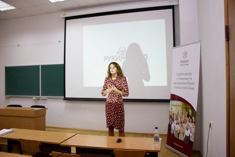Студенти, які навчаються за спеціалізаціями «Технології в ресторанному господарстві» і «Технології аюрведичних харчових продуктів», мали можливість поспілкуватися з керівником відділу навчання «Reikartz Hotel Group» Іриною Магалецькою. Гостя розповіла студентам про вимоги, які висуває роботодавець успішної вітчизняної мережі закладів готельно-ресторанного господарства до майбутнього співробітника, а також про можливості особистісного росту і розвитку у такій компанії.