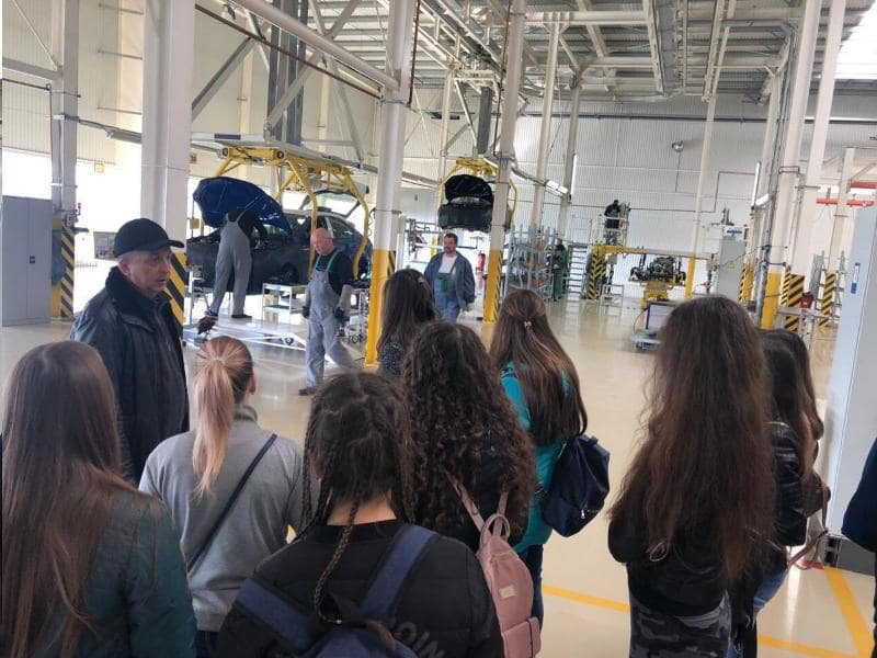 Студентів зацікавив побачений на власні очі процес виготовлення автівок. Частково укомплектовані машини рухаються одна за одною на лінії конвеєра. Звідти у кільцевому режимі легковики потрапляють спочатку на спеціальний стенд, а потім – на арку. Увесь процес поділений на такти, на яких працює певна кількість людей. Кожний із автомобілів має свою картку, тож контроль здійснюється на всіх етапах не лише виготовлення, а й перевірки та тестування продукції. Ігор Михайлович зауважив, що марка обов’язково знімається з виробництва, якщо навіть один із параметрів не відповідає нормі.