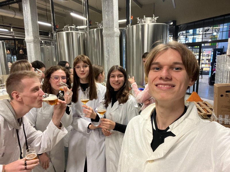 Пивоварня славиться широким асортиментом крафтового пива, яке варять досвідчені пивовари. Студенти скористалися нагодою продегустувати деякі зразки та органолептично оцінити їх смакові властивості.