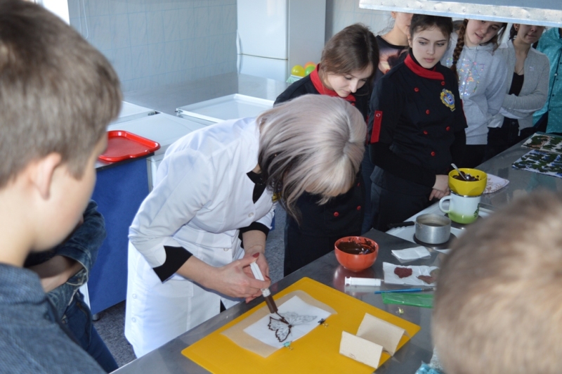 13 березня 2018 року. викладач Полтавського коледжу харчових технологій НУХТ Людмила Васецька провела майстер-клас «Шоколадні фантазії» для учнів 9-го класу гімназії №13.
