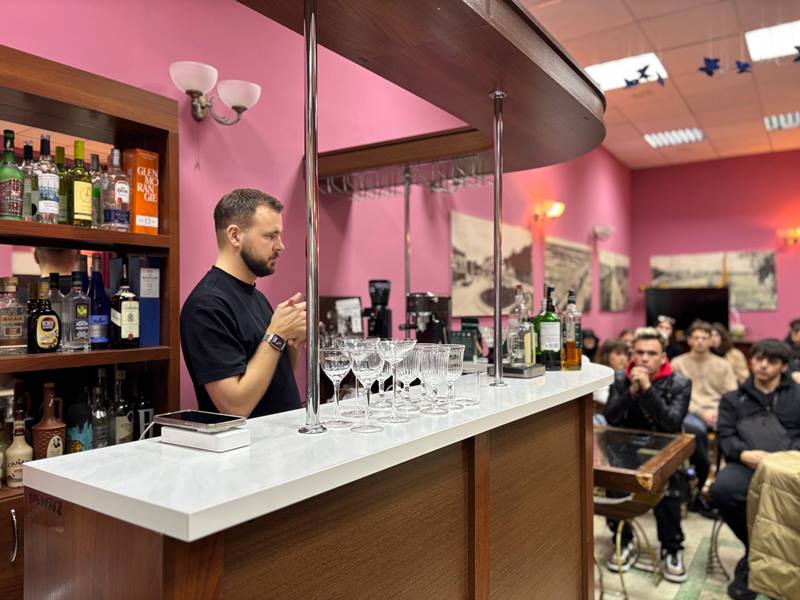 Владислав поділився досвідом участі в міжнародних змаганнях з барного мистецтва, тонкощами формування змішаних напоїв з кавою, приготував конкурсні кавові коктейлі, серед яких «Мартіні еспресо» та «Кавовий негроні», які найбільше вразили учасників майстер-класу. Здобувачі освіти брали участь у приготуванні коктейлів і мали змогу продегустувати власноруч приготовані напої.