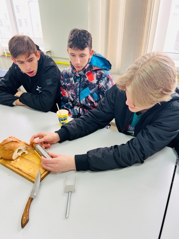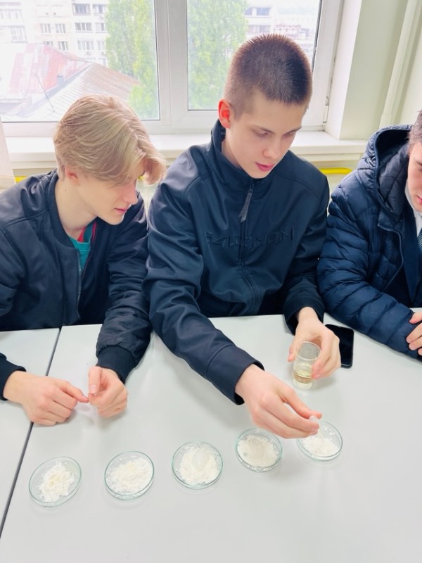 Анастасія Чорна допомогла десятикласникам визначити пористість булочного виробу, адже хліб – харчовий продукт щоденного вжитку. Також ліцеїсти на власні очі побачили, яким чином суміш із цукру, патоки і води перетворюється на льодяникову карамель. За органолептичним оцінюванням, вони поставили відмінну оцінку виготовленій карамелі.