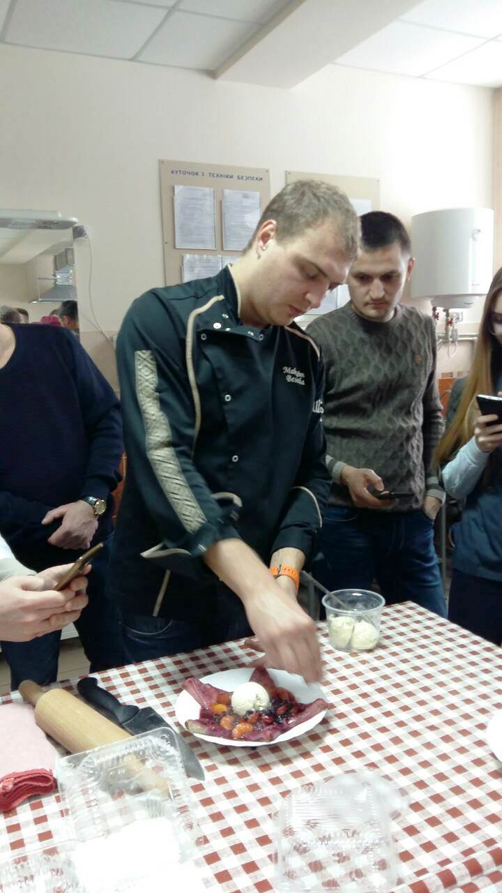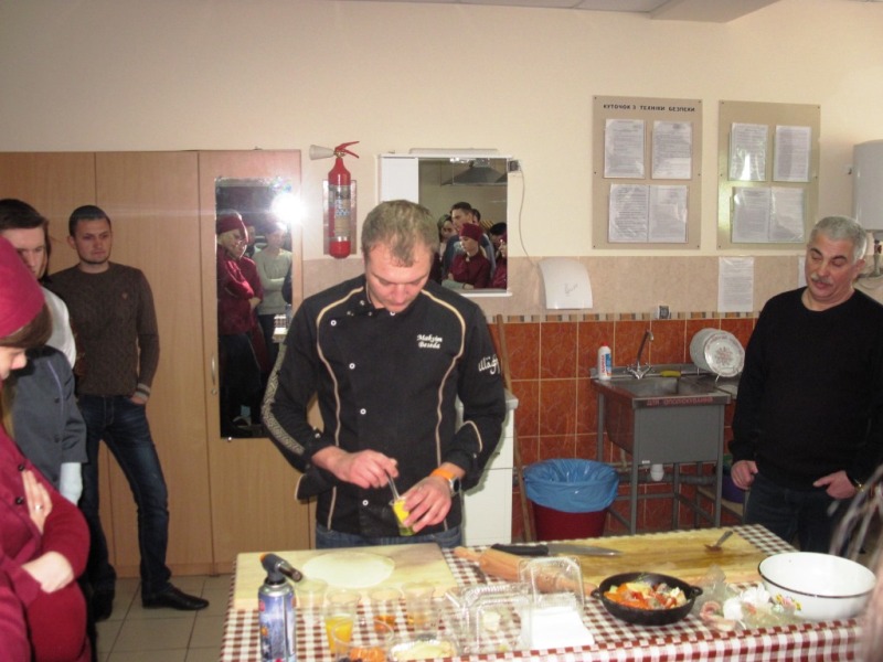 Студенти смакували овочами з рибою та неймовірно смачними млинчиками «Сюзетт». Вони вдячні шефу за таку цікаву і корисну зустріч, й мають надію на подальшу співпрацю.