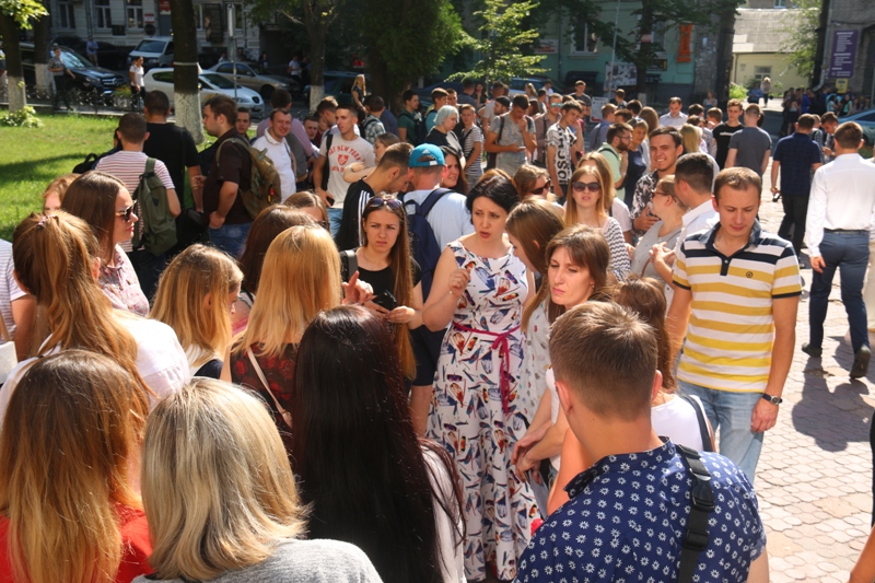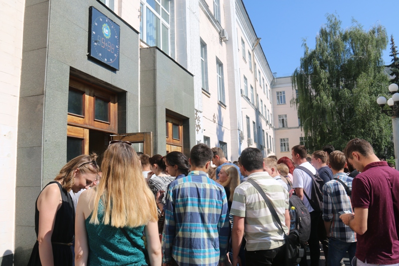 Ще задовго до призначеного часу на місці збору – площі перед головним корпусом університету, як то кажуть, яблуку ніде було впасти. Схвильовані вступники заздалегідь зібралися, щоб вчасно пройти всі передбачені регламентом процедури. Як завжди злагоджено спрацювали працівники приймальної комісії університету й відбіркових комісій інститутів і факультетів. Швидко й організовано сформувавши групи за спеціальностями, вони перевірили всі необхідні документи, надали останні консультації щодо правил поводження на випробуваннях й супроводили вступників до виділених для проведення випробувань аудиторій.