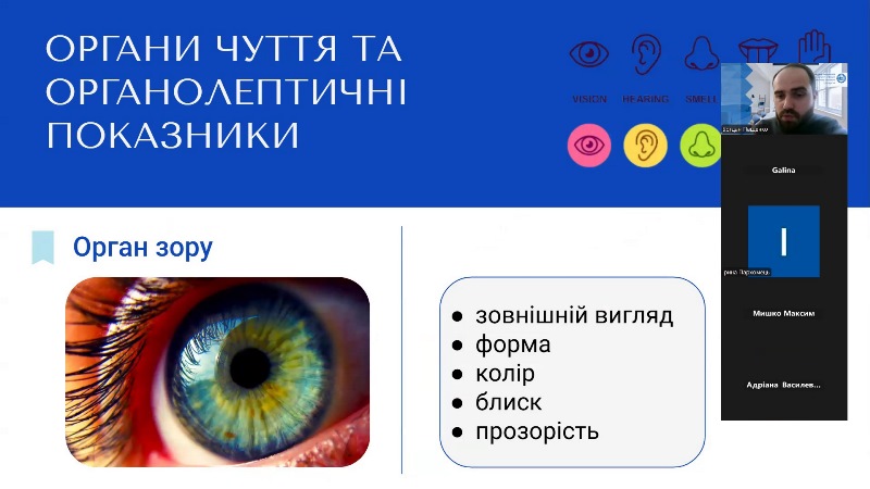 Доцент кафедри експертизи харчових продуктів Богдан Пащенко 24 березня прочитав гостьову лекцію «Органи чуття людини та основи сенсорного аналізу» для здобувачів Київського фахового коледжу ресторанного господарства НУХТ.