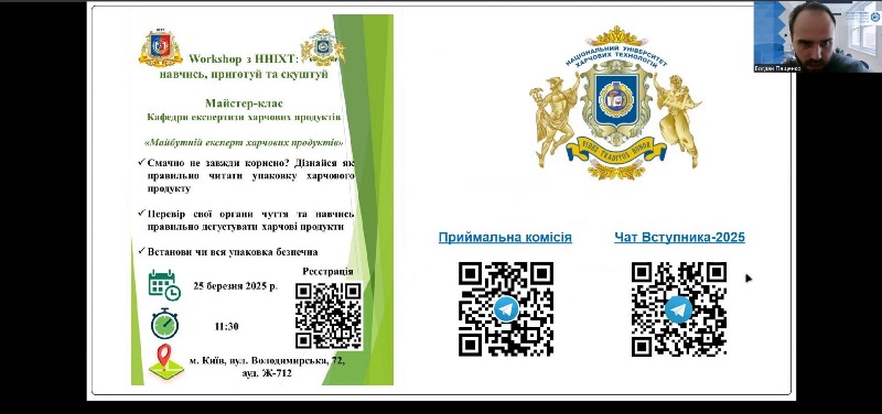 На завершення лекції Богдан Пащенко запросив випускників коледжів до вступу та подальшого навчання за освітньо-професійною програмою «Технологічна експертиза та безпека харчової продукції» та іншими, що є доступними у нашому університеті, а також на захопливий захід «Workshop з ННІХТ: навчись, приготуй та скуштуй», який проходить в університеті 24 та 25 березня.