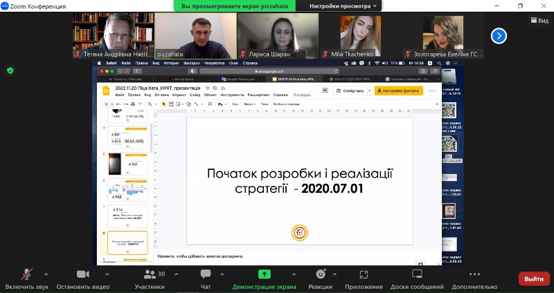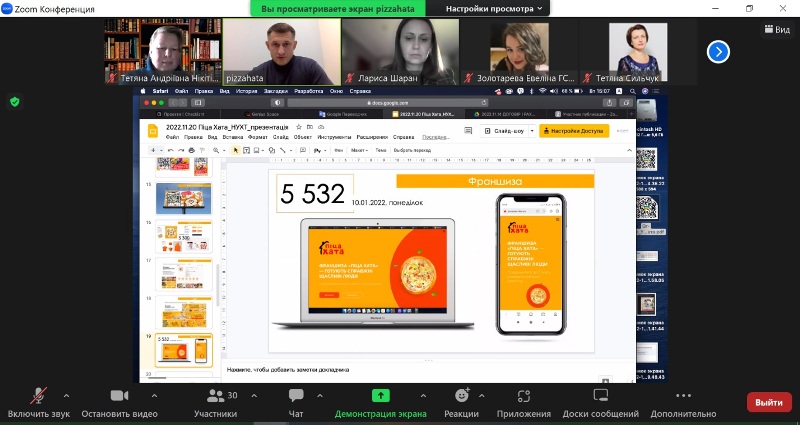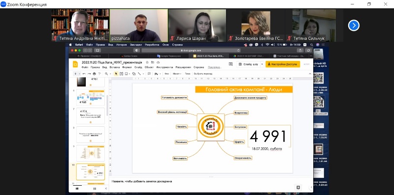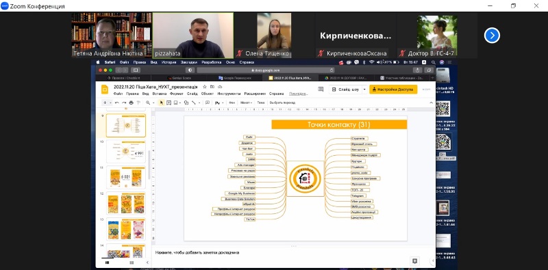 На семінарі розглянули: роботу закладів і служби доставки піцерій «Піца Хата» під час карантинних обмежень COVID-19, історію відкриття та розвитку мережі спеціалізованих закладів «Піца Хата», структуру компанії, сучасну стратегію розвитку підприємства, стратегію просування та рекламні комунікації, фірмовий стиль, стратегію формування та посування на ринок франшизи, основні фінансові показники діяльності ресторанних підприємств; роботу закладів та організацію сервісу доставки «Піца Хата» під час військового стану.