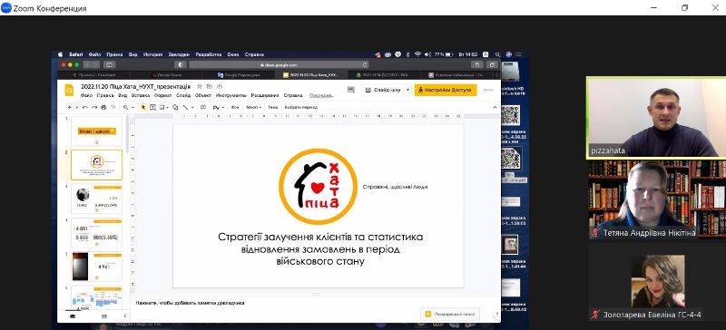 На кафедрі готельно-ресторанної справи відбувся черговий науковий семінар. Цього разу гостьовим спікером виступив маркетолог закладів ресторанного господарства та сервісу доставки «Піца Хата» Станіслав Григоренко. Тема наукового івенту – «Стратегії залучення клієнтів та статистика відновлення замовлень у період військового стану».