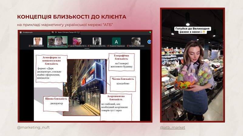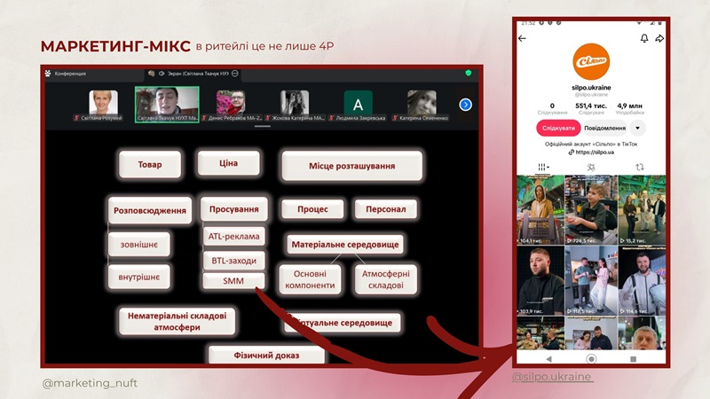 Лекція супроводжувалася практичними прикладами з українського ритейл-бізнесу, зокрема розглядалися кейси торговельних мереж «АТБ-маркет», «Сільпо», «Novus», «Good Wine», «Антошка» та інших.