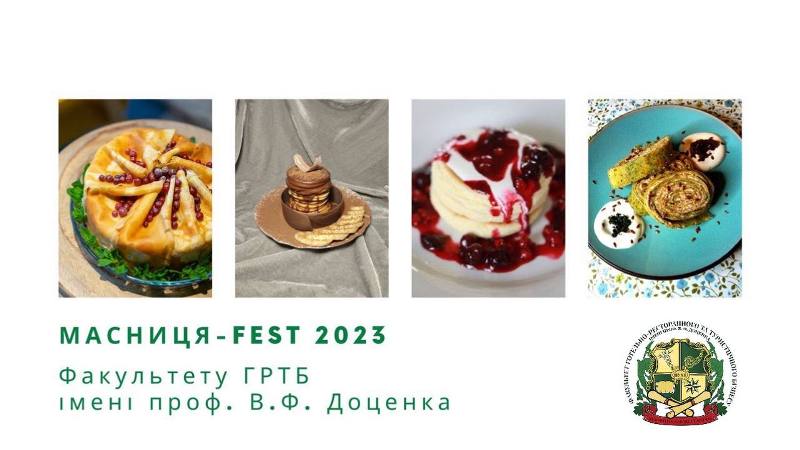 Фінішував традиційний кулінарний конкурс Масниця-FEST 2023 від факультету готельно-ресторанного та туристичного бізнесу імені проф. В.Ф. Доценка (ГРТБ), який цього року відбувся під гаслом «Зиму проводжаємо – весну та перемогу зустрічаємо». Інтерактивний захід, який вперше відбувся у 2019 році, у сучасних реаліях змінив локацію з комплексу навчальних аудиторій на освітній діджитал-простір.