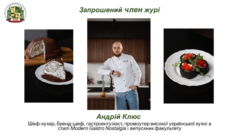 До журі конкурсу увійшли компетентні викладачі випускових кафедр, завідувачка кафедри готельно-ресторанної справи Лариса Шаран, доцентки цієї ж кафедри Ольга Пушка, Оксана Кирпіченкова, доцентки кафедри технології ресторанної і аюрведичної продукції Олена Павлюченко, Людмила Мамченко, Наталія Стукальська. На запрошення заступника декана факультету по роботі зі студентами Олени Тищенко до журі долучився стейкхолдер, шеф-кухар, бренд-шеф, гастроентузіаст, промоутер високої української кухні в стилі Modern Gastro Nostalgiaі, випускник факультету Андрій Клюс, який наразі організовує благодійні гастровечері високої української кухні на підтримку ЗСУ.