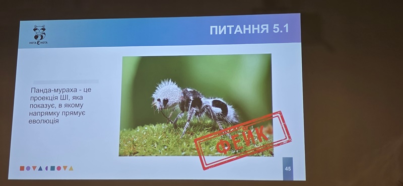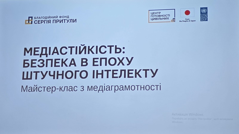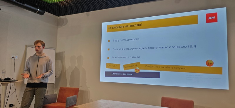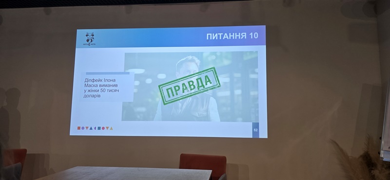 Учасники також ознайомилися з методами спростування фейкових матеріалів, працюючи з онлайн-інструментами для перевірки достовірності контенту та аналізу метаданих зображень і відео. Особливу увагу привернули реальні приклади, які продемонстрували, як матеріали, створені за допомогою ШІ, можуть призводити до дезінформації або навіть викликати серйозні репутаційні скандали.