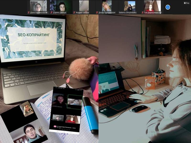Як доповідачі у вебінарі взяли участь шість студентів спеціальності 075 «Маркетинг». Валентина Яценко розповіла своїм друзям, які види копірайтингу найбільш популярні, чим відрізняються інформаційний копірайтинг від креативного, та який контент дійсно залучає читача до активності. Формули успішного копірайтингу на реальних прикладах продемонструвала студентам і викладачам Анастасія Вихристюк. Майбутні маркетологи дізналися, що крім AIDA існує багато моделей написання тексту і, виявляється, модель «4Р» є не лише в маркетингу. Досить актуальними були й дослідження Віри Кучерини, яка відкрила молодим маркетологам маленькі хитрощі створення креативних рекламних заголовків. Про усі тонкощі застосування AIDA, найбільш популярної формули копірайтингу, розповіла Катерина Цибровська. Соломія Шмигована відкрила одногрупникам секрети дієвого SEO-копірайтингу. Із її слів здобувачі дізналися лайфхаки створення SEO-текстів: як влаштований веб-пошук, для чого потрібна оптимізація, що таке «водність тексту» і чому її потрібно уникати, який відсоток унікальності повинен містити вдалий текст, та чому SEO-копірайтинг є чарівним засобом збільшення прибутків. Неодмінну цікавість викликала тема Таїсії Дорошкевич «Копірайтинг соціальної реклами». Ілюстрована креативними зображеннями, доповідь демонструвала, як рекламний текст у поєднанні з візуальним рядом може не лише продавати товар, але й відкривати завісу актуальних проблем, просуваючи важливі ідеї.