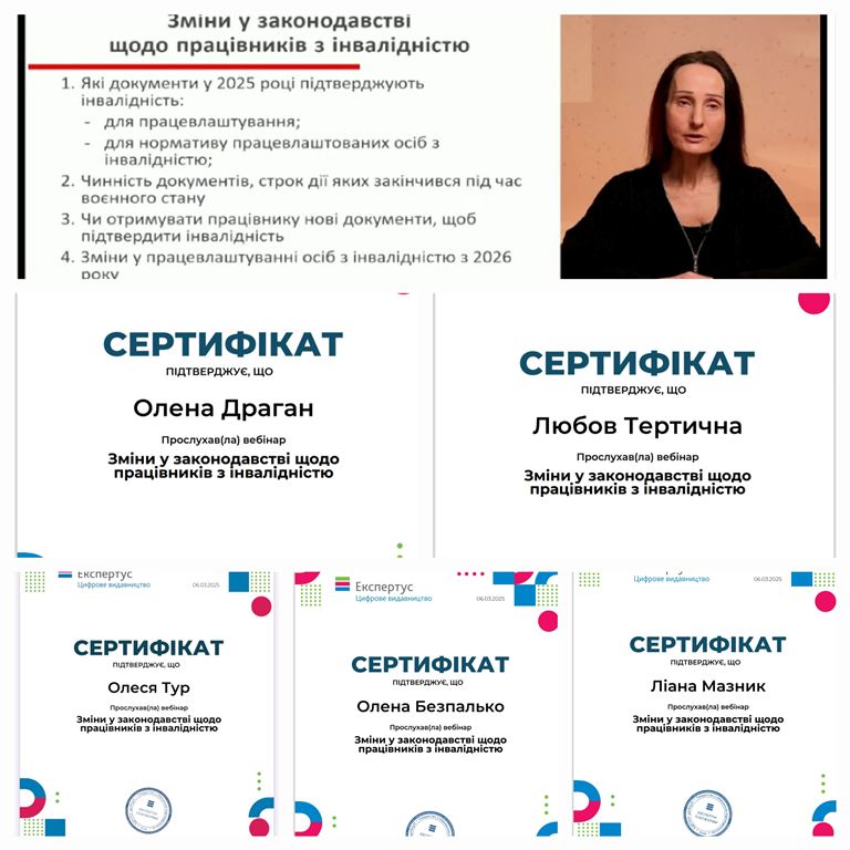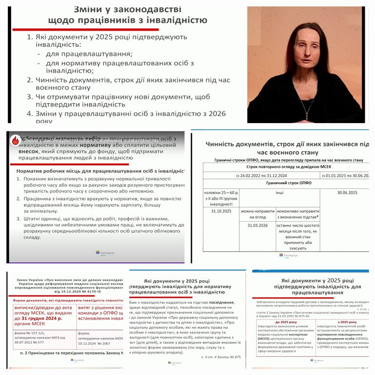 Під час вебінару особливий інтерес у здобувачів викликали питання: які документи у 2025 році підтверджуватимуть інвалідність для працевлаштування та виконання нормативів; як визначається чинність документів, термін дії яких закінчився під час воєнного стану; чи потрібно працівнику оновлювати документи для підтвердження інвалідності та які зміни у законодавстві щодо працевлаштування осіб з інвалідністю діятимуть із 2025 року?