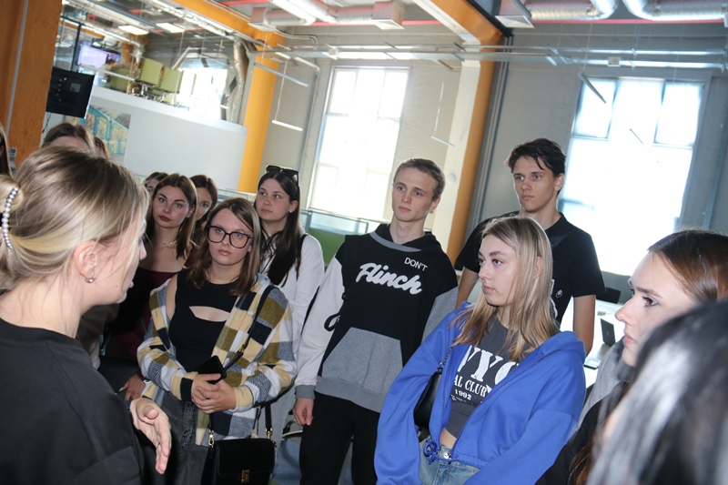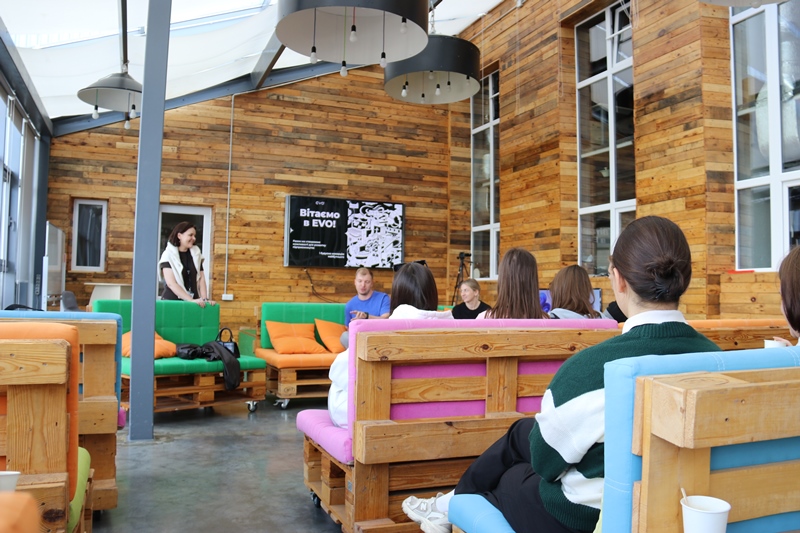 Програма заходу була максимально насиченою. Спершу студенти ознайомились з умовами праці, побутом і «культурним кодом» EVO.company. Спеціалістка з адаптації співробітників Маргарита Єременко провела для них екскурсію офісом, який вражає масштабами, ергономікою та оригінальним дизайном у стилі лофт. Це приміщення колишнього заводу площею 7000 м², де кожний із трьох поверхів розділений на два рівні й обладнаний під open space. Побут в EVO.company організовано так, щоб створити максимально комфортну атмосферу для роботи 24/7: смузі- та кавовий бари, кухні, лаунж-зони, кімнати для відпочинку та сну, місця для настільних ігор, спортивна зала, душові, бібліотека, власний фуд-корт, простора тераса, де проходять корпоративні івенти, презентації та ділові зустрічі.