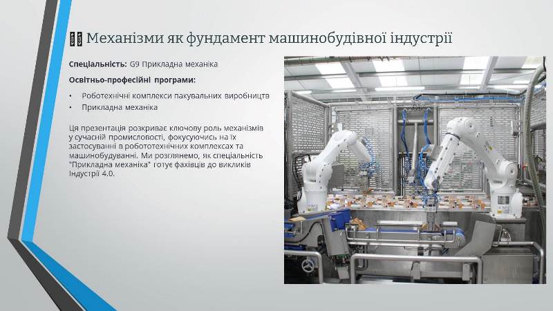 Слухачі дізналися про застосування механізмів у сучасній інженерії: у пакувальних лініях, робототехнічних комплексах, авіаційних і безпілотних системах, на автоматизованих виробництвах.
