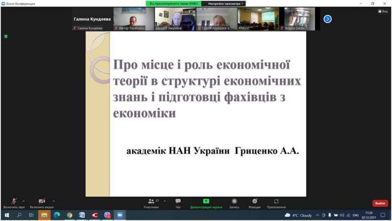 2 грудня 2021 р. відбулося засідання Міжвідомчої координаційної ради з економічної теорії Національної академії наук України та Міністерства освіти і науки України, присвячене обговоренню проблем місця і ролі економічної теорії у підготовці фахівців з економіки, у якій взяли участь завідувачка кафедри економічної теорії Інна Ситник та професорка кафедри Галина Кундєєва.