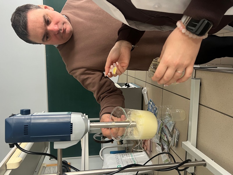 На кафедрі технології жирів, хімічних технологій харчових добавок та косметичних засобів відбулася захоплива практична подія – майстер-клас «Мистецтво створення ідеальної емульсії, або чому олія та вода стають ніжним кремом у твоїх руках». Захід об’єднав студентів другого та третього курсів спеціальностей «Харчові технології» та «Хімічні технології», які мали можливість вийти за межі теоретичних підручників і відчути себе справжніми розробниками інноваційних продуктів.