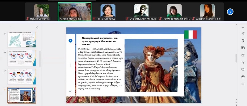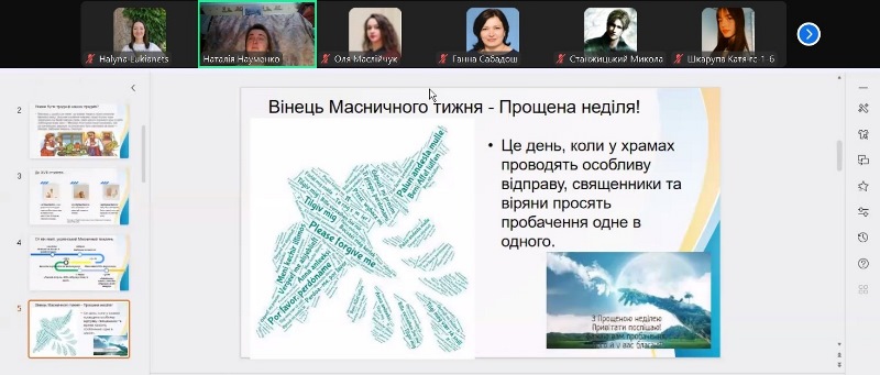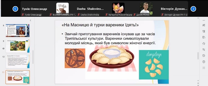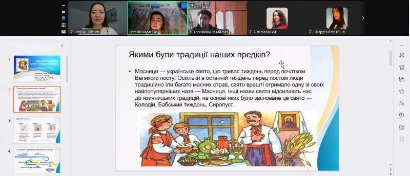 Для наших гостей віртуальна культурологічна подорож, у якій вони мали нагоду осягнути традиції святкування Масниці в Україні та інших країнах (Франції, Великобританії, Данії, Польщі, Німеччині, Італії, Чехії), зрозуміти їхні спільні та відмінні риси, а найголовніше – пізнати для себе щось нове та отримати мотивацію до усвідомлення себе носієм і продовжувачем звичаїв рідної землі, – відбулася уперше. На щастя, попри складнощі з відсутністю електрики, Інтернету та опалення внаслідок російських обстрілів, зустріч минула без ексцесів і з дуже позитивними емоціями.