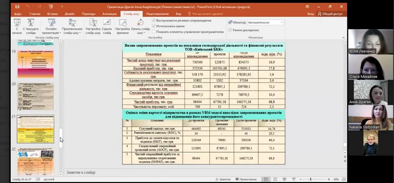 Уже перші хвилини презентацій відобразили зрілість майбутніх фахівців, що мають сформовані думки та чіткі позиції щодо бачення проблематик дослідження. З актуальністю та практичною значущістю їх досліджень сперечатися складно, адже вони стосуються інновацій, оптимізації, підвищення ефективності і конкурентоздатності українського бізнесу.