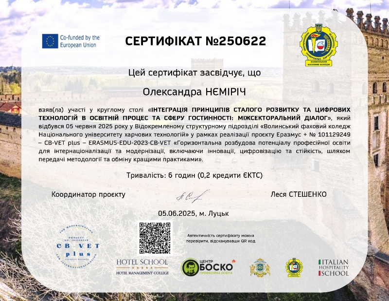 Захід продемонстрував, що сталий розвиток і цифрові технології – не майбутнє, а вже сьогодення для української освіти та індустрії гостинності. Волинський фаховий коледж НУХТ впевнено крокує шляхом модернізації та міжсекторального партнерства, формуючи фахівців нового покоління – екологічно свідомих, цифрово грамотних і готових до глобальних викликів.